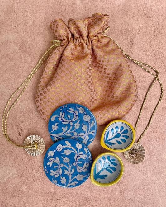 Blue pottery Diyas and Coasters Gift Set
