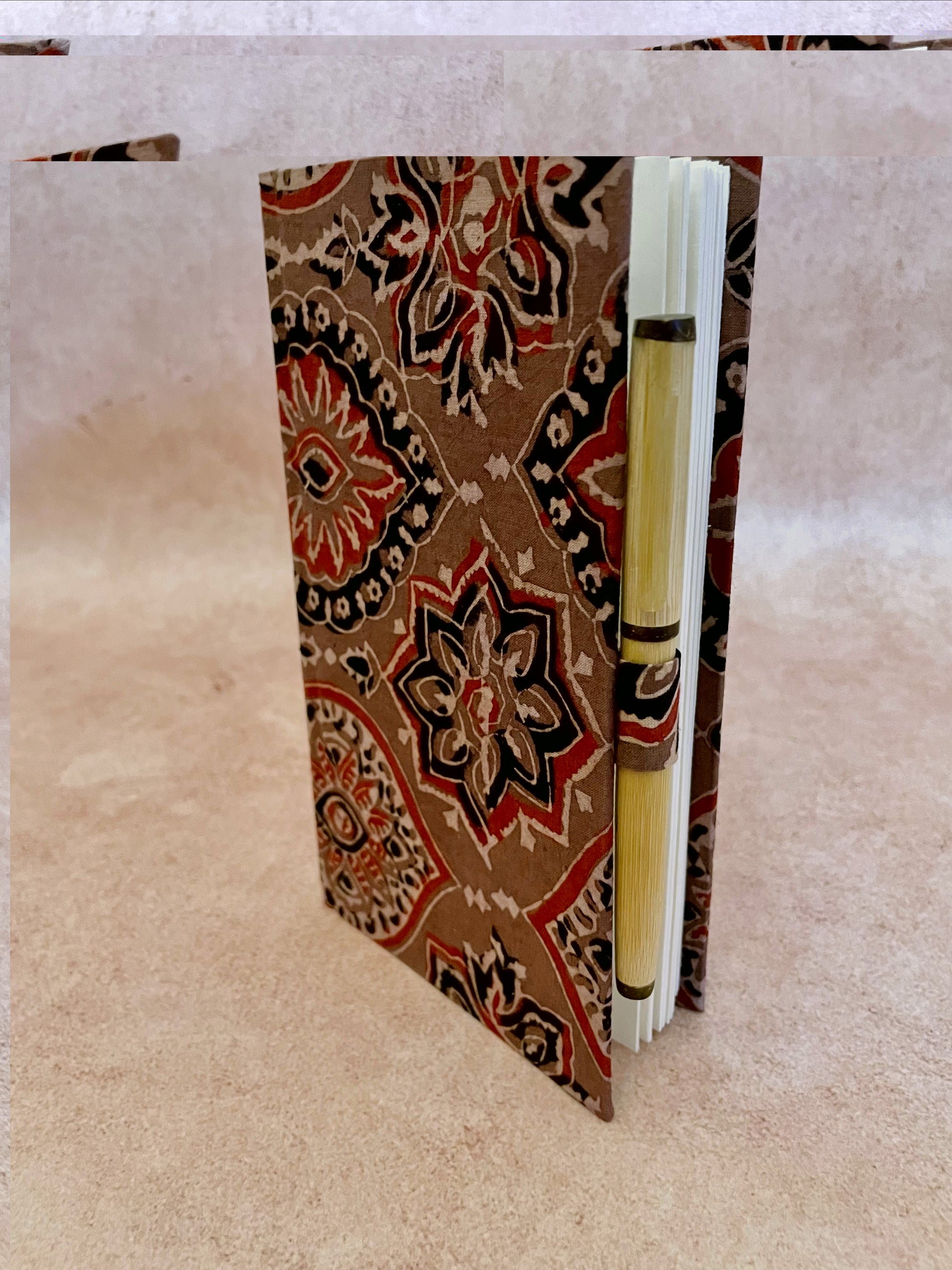 Blockprinted Ajrakh Journal and Bamboo Pen (Set of 2)