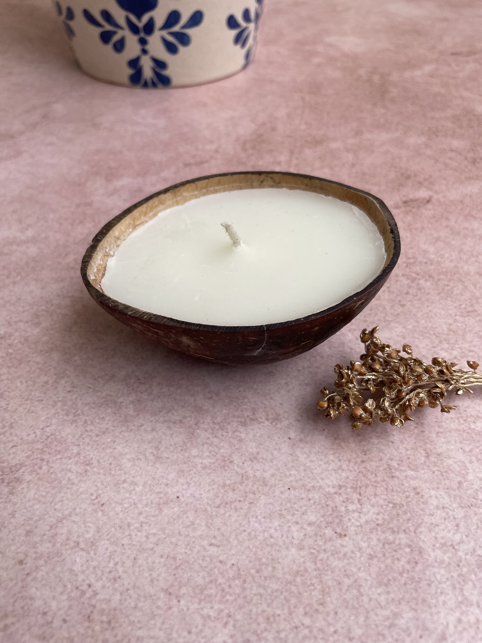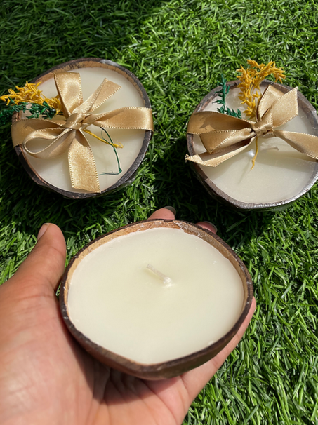 The coconut candles add a touch of earthiness and tropical mood to your space. Once the candle is used up the coconut shells can be used for utility purposes.