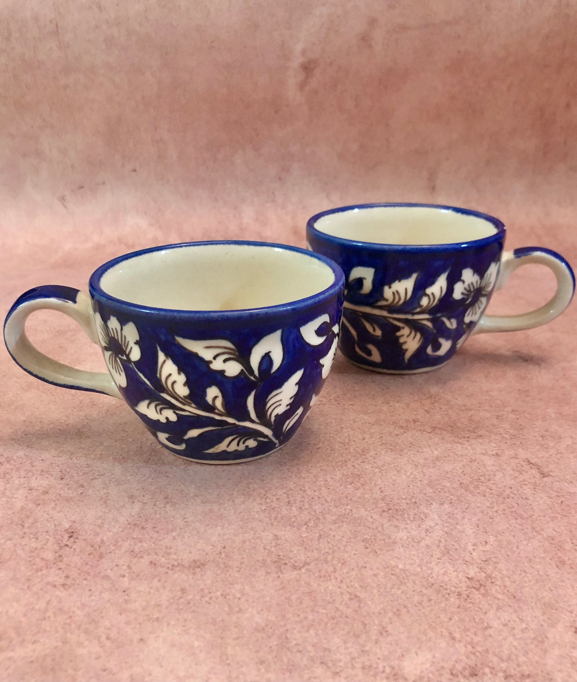 Handpainted Mughal Blue and White Ceramic Tea Cups ( Set of 2 )
